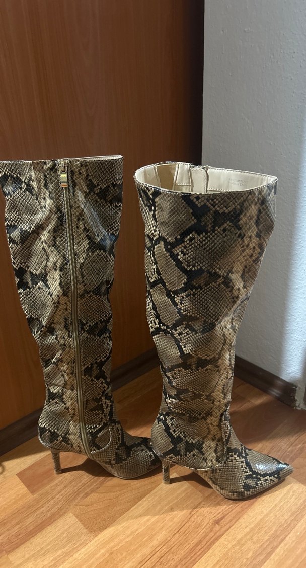 Kahverengi Yılan Desenli Deri Dizüstü Çizme