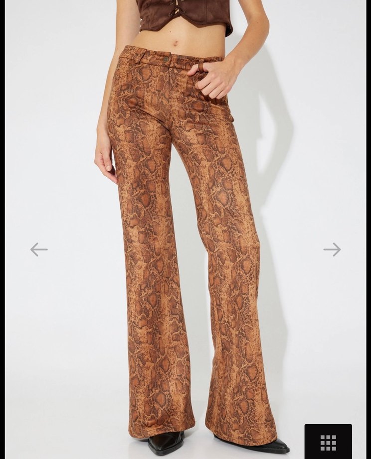Kahverengi Yılan Desenli Deri İspanyol Paça Pantolon