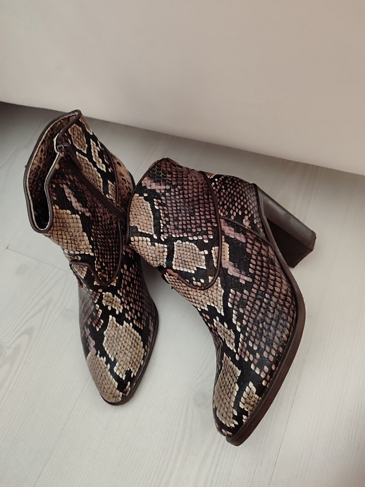Kahverengi Yılan Desenli Deri Kadın Bot