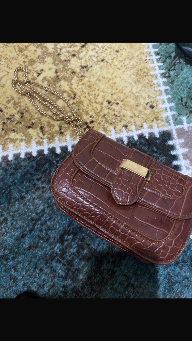 Kahverengi deri kadın çanta, yılan deseni ve kemerli tasarıma sahip, altın zincir askılı bohem Paris tarzını yansıtıyor.