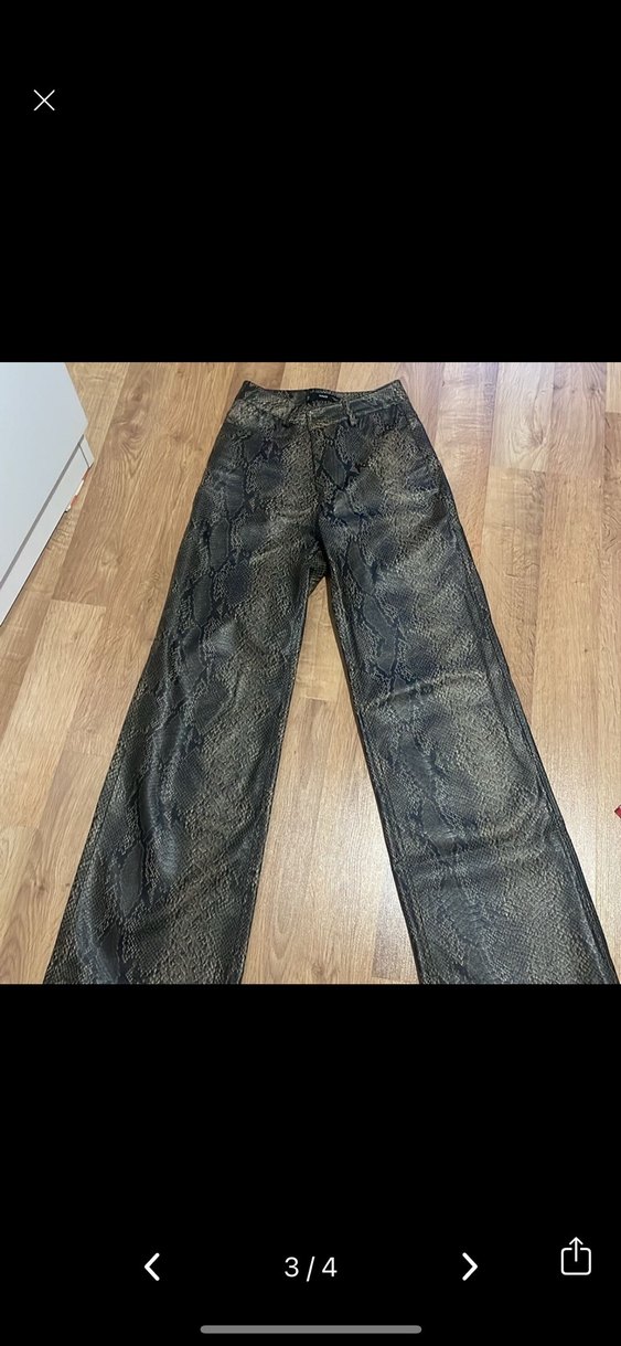 Kahverengi Yılan Desenli Deri Kadın Pantolon