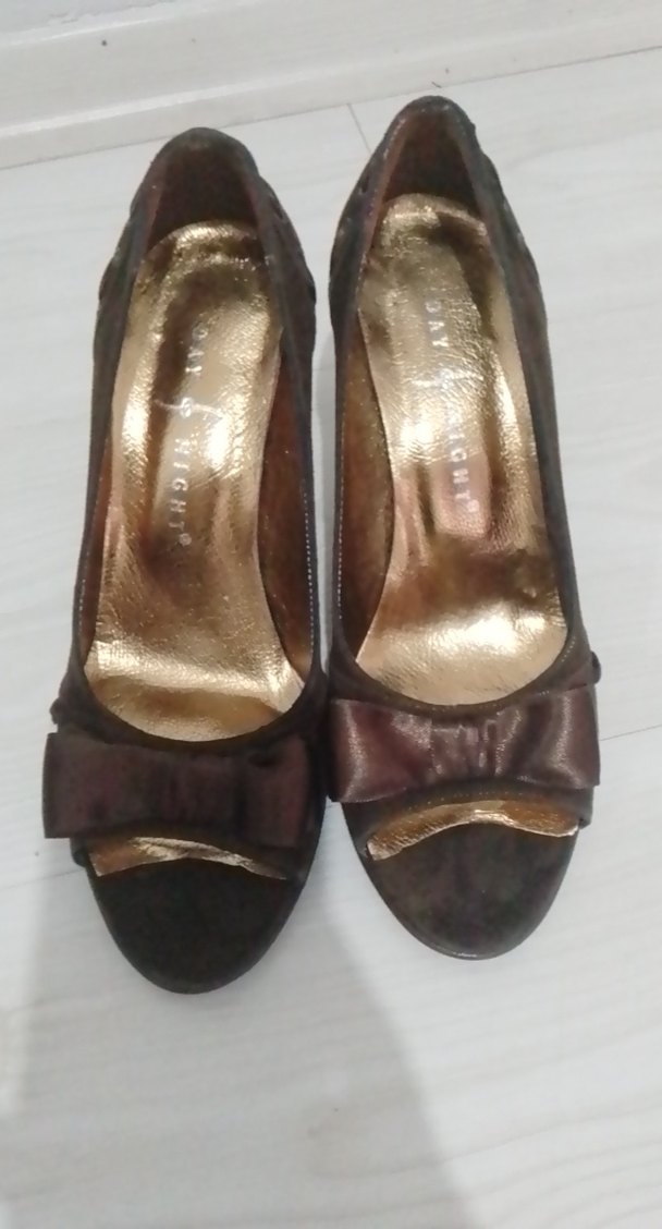 Kadınlar için koyu kahverengi süet yılan desenli dolgu topuklu ayakkabılar. Tokalı detaylı, modern klasik stile sahip, romantik akşamlar için uygun.