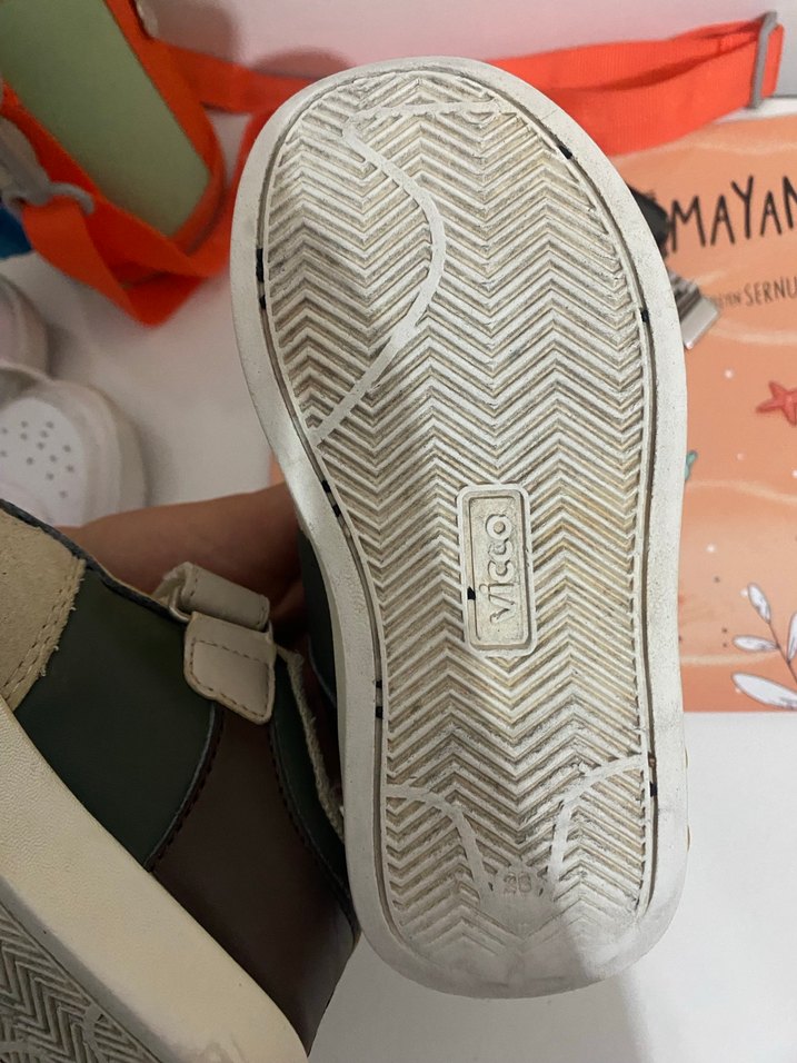 Kahverengi yılan desenli erkek çocuk spor ayakkabısı, gri detaylıdır. Kauçuk taban ve cırt cırtlı kapanışa sahiptir, trend sokak tarzı için uygundur. Bir tanesinin bantının kenarında defosu var ama giyildiğinde aşırı belli olmuyor.