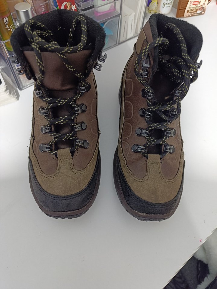 Kahverengi yılan desenli outdoor bot, dayanıklı kauçuk malzeme ve cırt cırt detaylı, sokak stiline uygun.