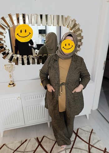 Kahverengi yılan desenli, bol kesim ikili takım.