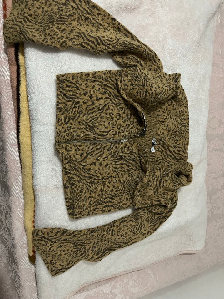 Kahverengi Yılan Desenli Kürklü Kadın Kazak