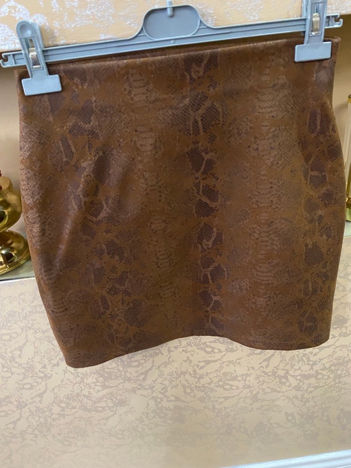 Kahverengi Yılan Desenli Mini Deri Etek