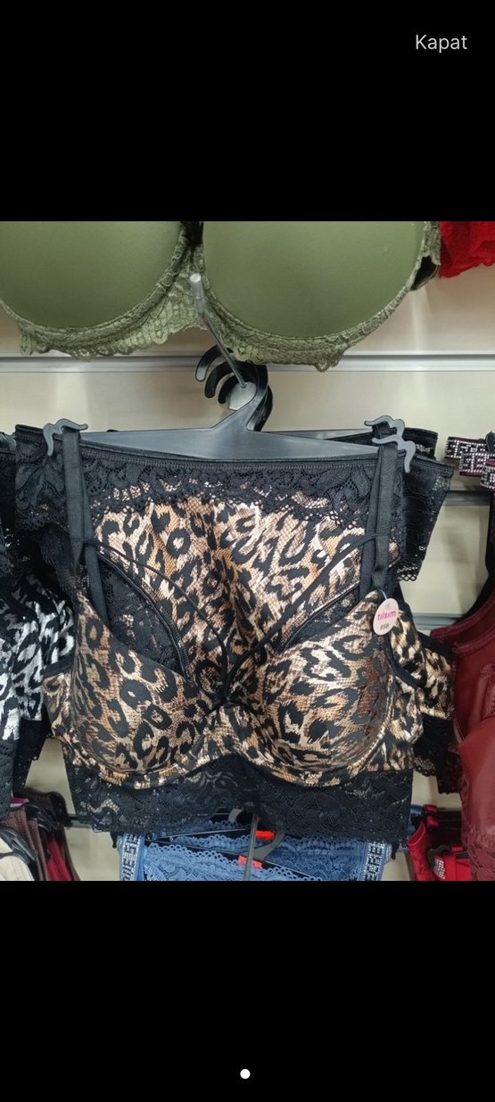 Kahverengi yılan desenli, kısa boylu sütyen, siyah dantel detayları ile parlıyor, gösterişli sokak tarzına uygun.