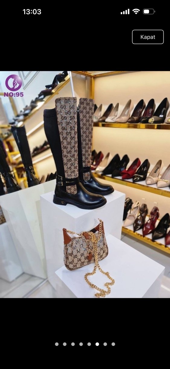 Kahverengi yılan desenli deri dizüstü çizme, yüksek topuk ve tokalı detaylarla klasik şıklığı sokak modasıyla buluşturuyor.