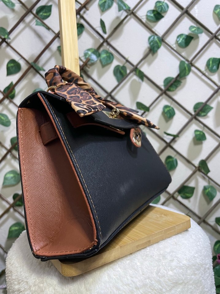 Kahverengi deri, koyu yılan desenli, tokalı kadın çantası. Bohem stil ve klasik zarafeti günlük kullanıma sunar.