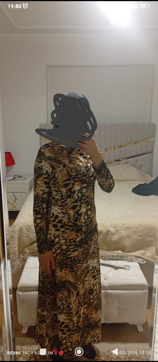 Kahverengi Yılan Desenli Uzun Elbise yeni . hiç giyilmedi