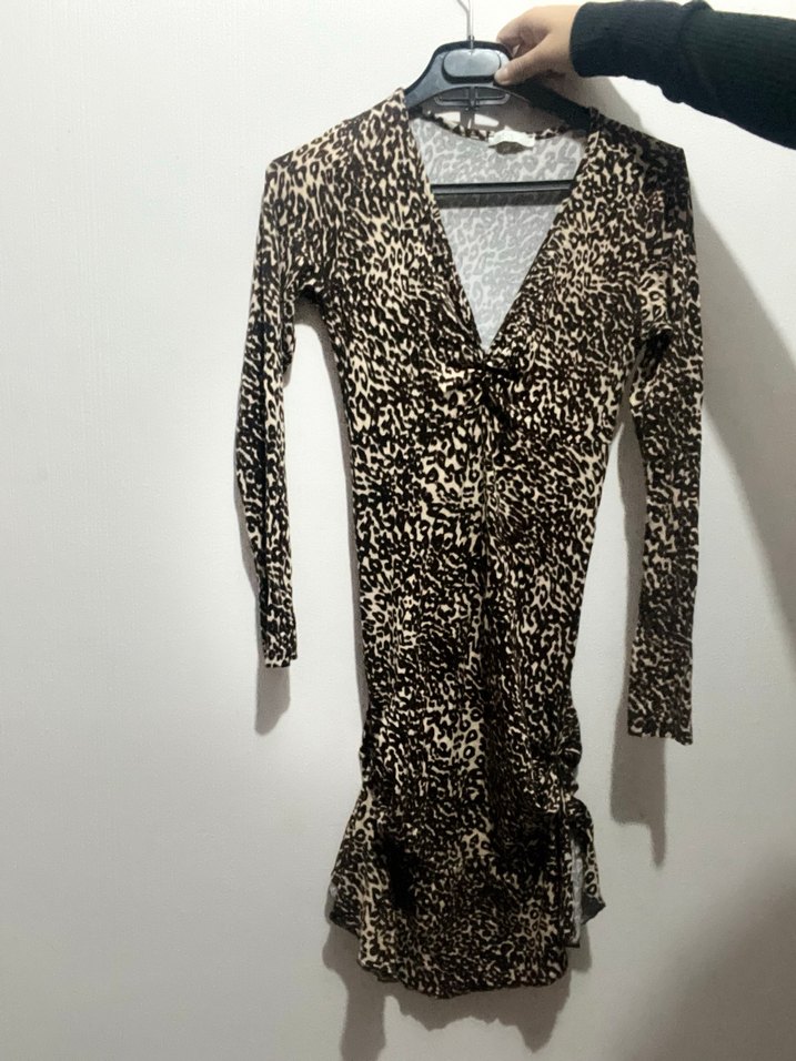 Kahverengi Yılan Desenli Uzun Kollu Elbise