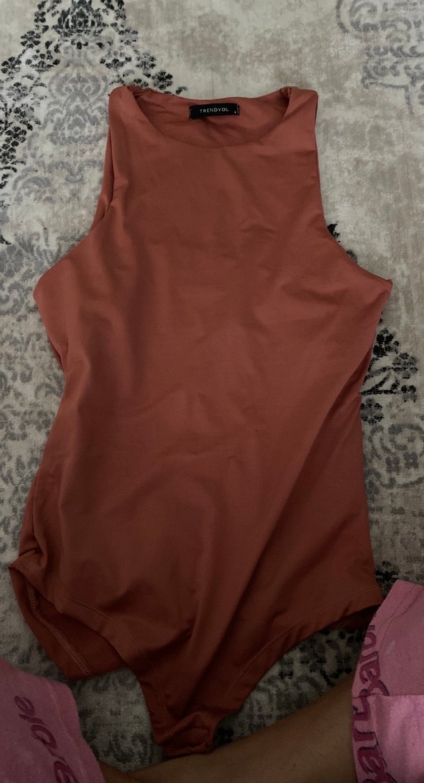 Kahverengi Yüksek Yakalı Kolsuz Body