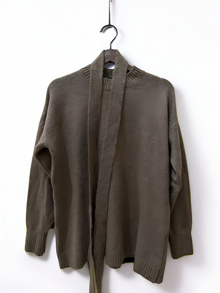 Kahverengi Yüksek Yakalı ve kemerli Kadın Kazak
