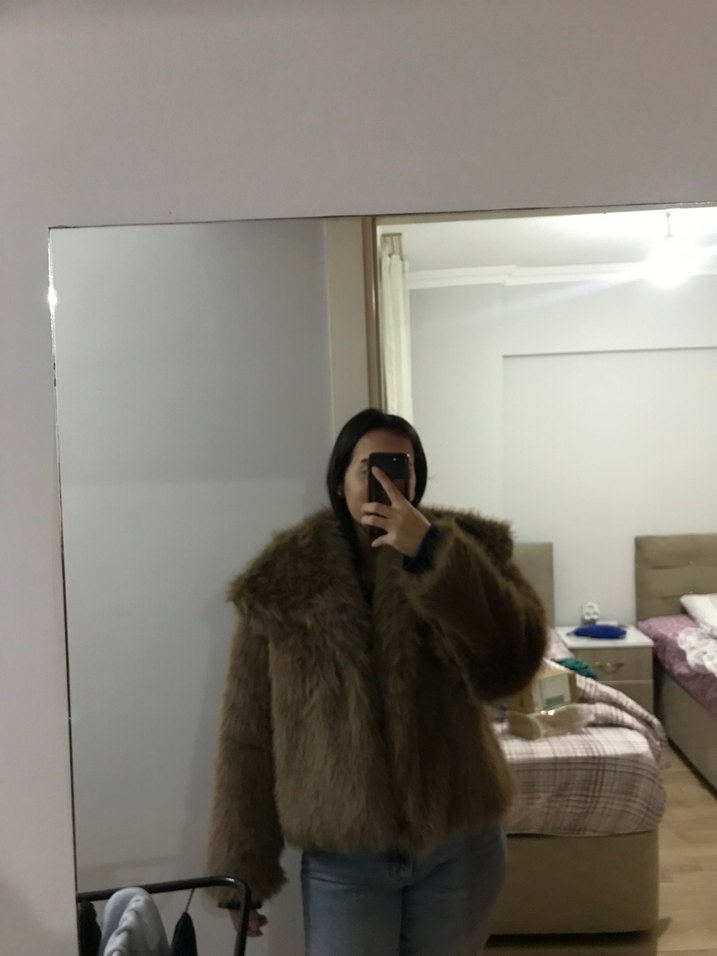 Kahverengi Yumuşak Dokulu Kadın Kürk Mont