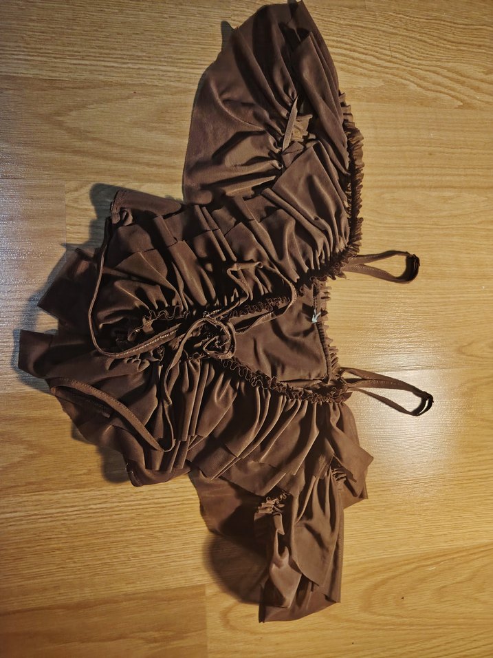 Kahverengi yumuşak kumaş Korse ipli bluz