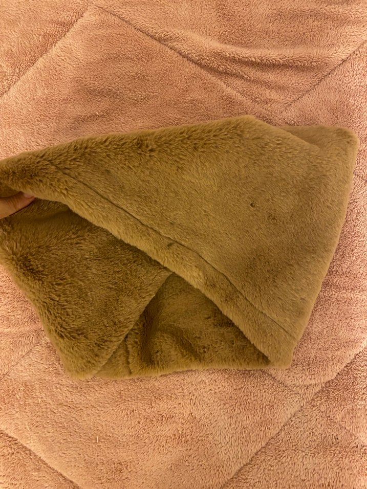 Pastel tonlarda, kahverengi yumuşak peluş boyunluk