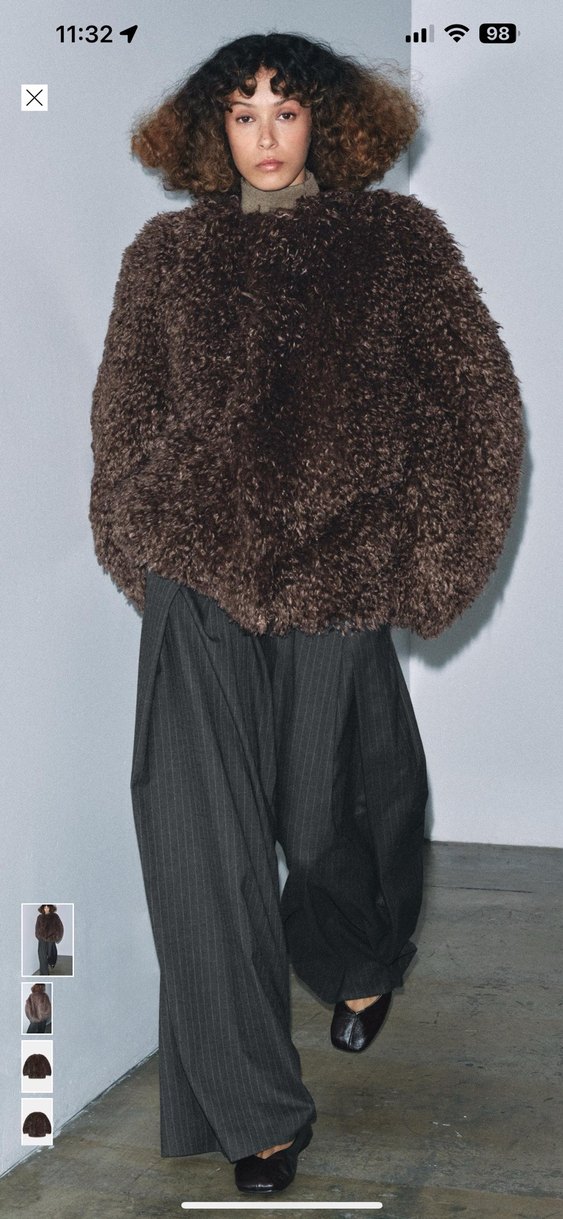 Kahverengi Yünlü Tüylü Kadın Midi Ceket