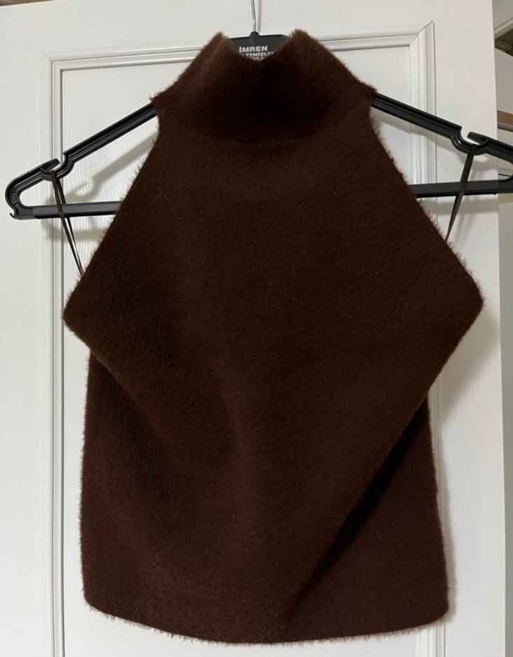 Kahverengi Yünlü Yüksek Yakalı Bluz