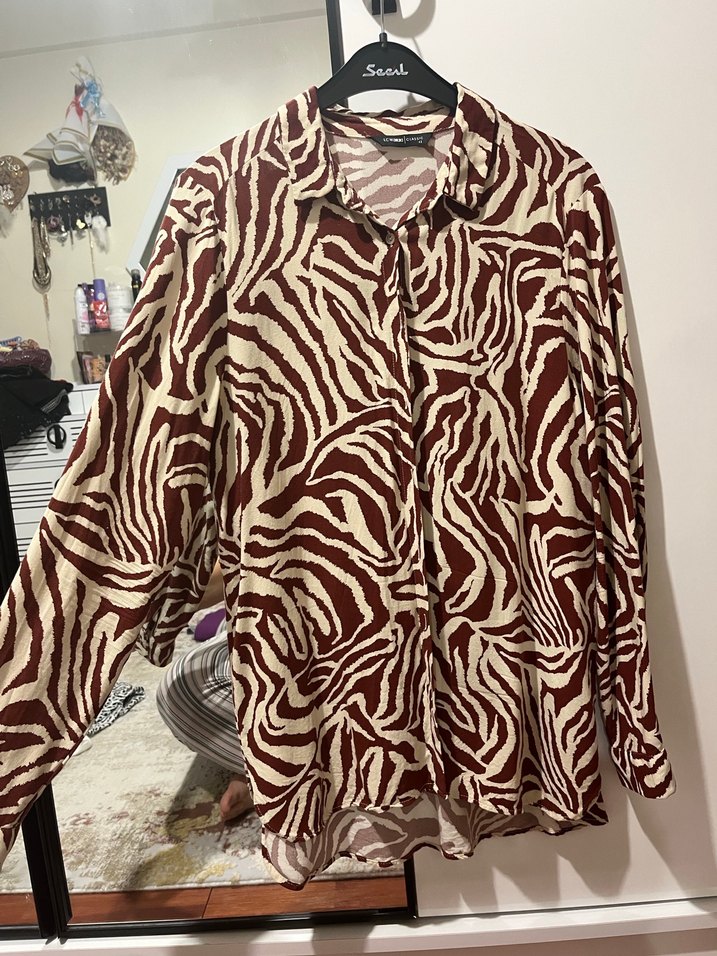 Kahverengi Zebra Desenli 42 beden gömlek