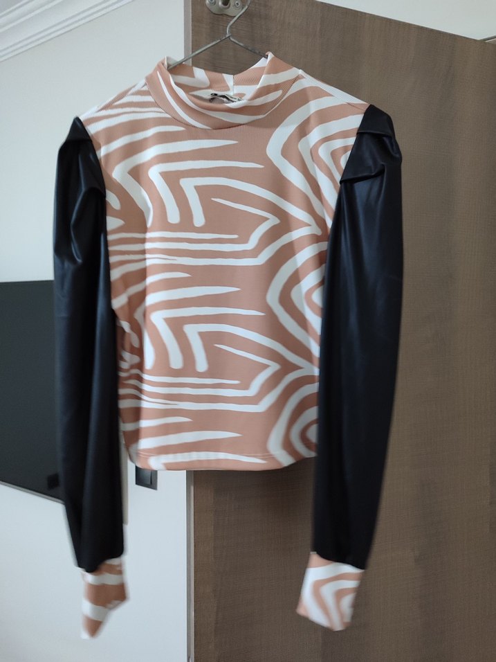 Kahverengi Zebra Desenli Deri Bluz