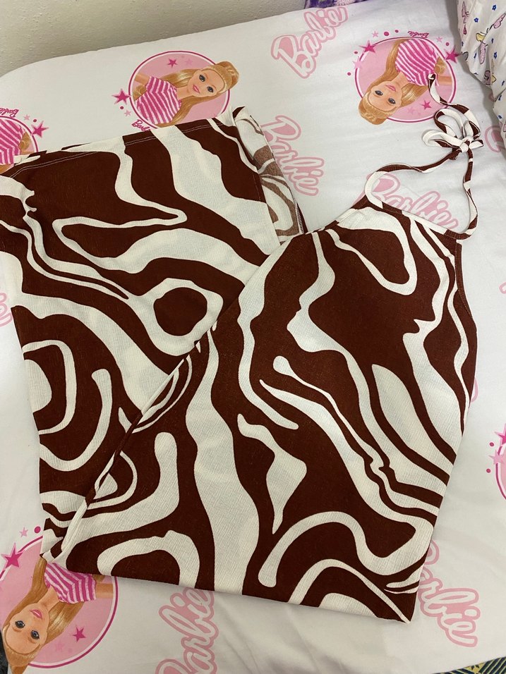 Kahverengi Zebra Desenli elbise - Görsel 1