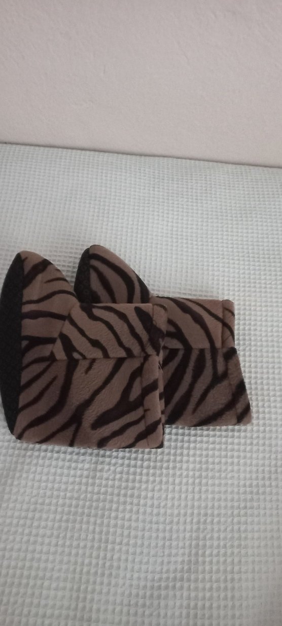 Kahverengi zebra desenli bogazli kalin ev patigi ayaklariniz usumez