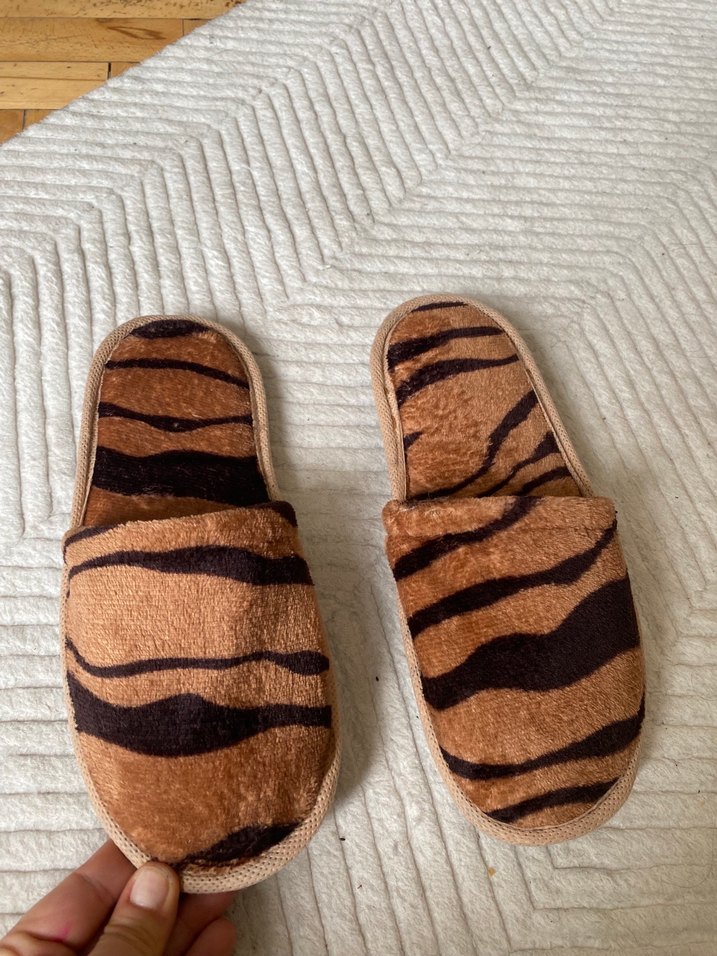 Kahverengi Zebra Desenli Kadın Ev Terliği
