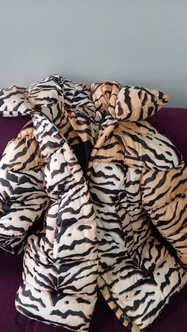 Kahverengi zebra desenli, kürk detaylı, sentetik kumaştan yapılmış, halter yaka ve askılı kollu, midi uzunlukta, fitted kesim kadın kışlık mont. Sokak stiline uygun, dış mekan kullanımı için ideal. ❄️Kızlar daha yeni aldım sadece 1 kez kullandım o da 1 saat bile değil maddi ihtiyacım var bunun için satmak istiyorum