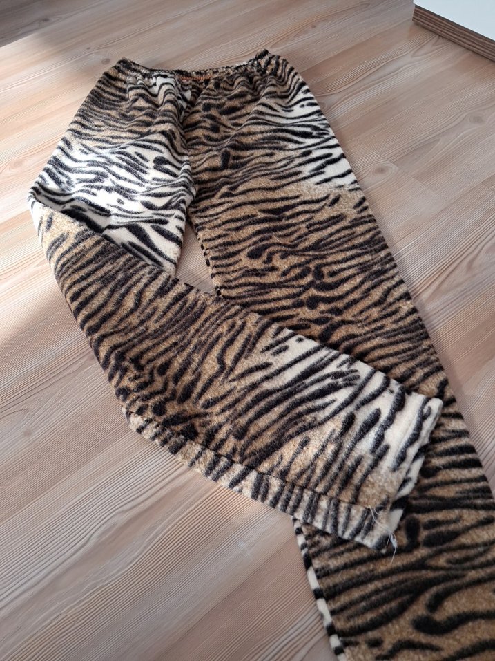 Kahverengi zebra desenli, yumuşak kürk detaylı, uzun ve bol kesim kadın polar alt eşofman. hiç kullanılmadı sm uyumlu.
