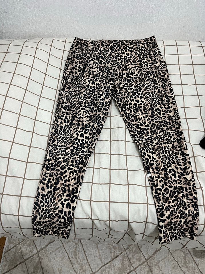 Kahverengi zebra desenli, kürk detaylı, midi boy, dar kesim kadın tayt, günlük ve sokak stili için uygundur.