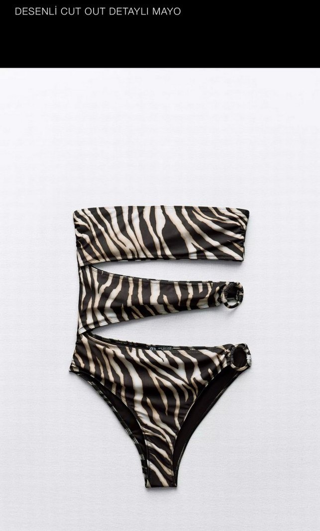 Kahverengi zebra desenli, kemerli , modern tarzda kadın mayo. Plaj için uygundur. sadece deneme amacli giyildi