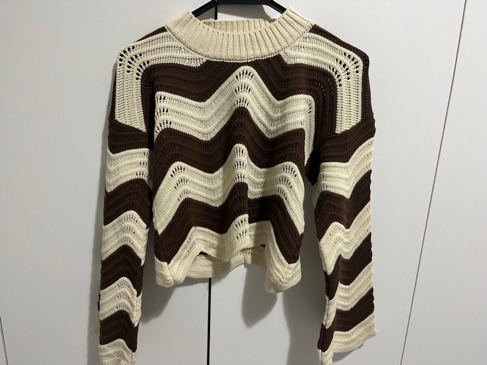 Bu örgü kadın kazak, kahverengi ve krem zebra deseni, uzun kollu ve bisiklet yaka özelliklerine sahiptir. Salaş kesimi ve rahat stiliyle günlük kullanıma uygundur.