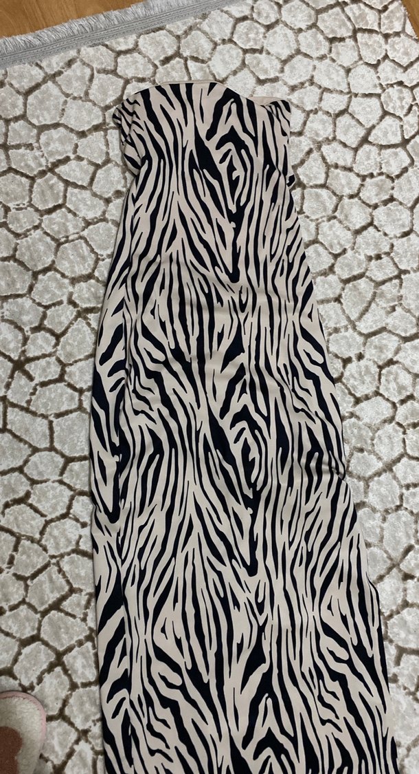 Kahverengi Zebra Desenli Uzun Kadın Elbise