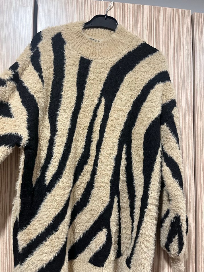 Kahverengi Zebra Desenli Uzun Yumuşak Kazak