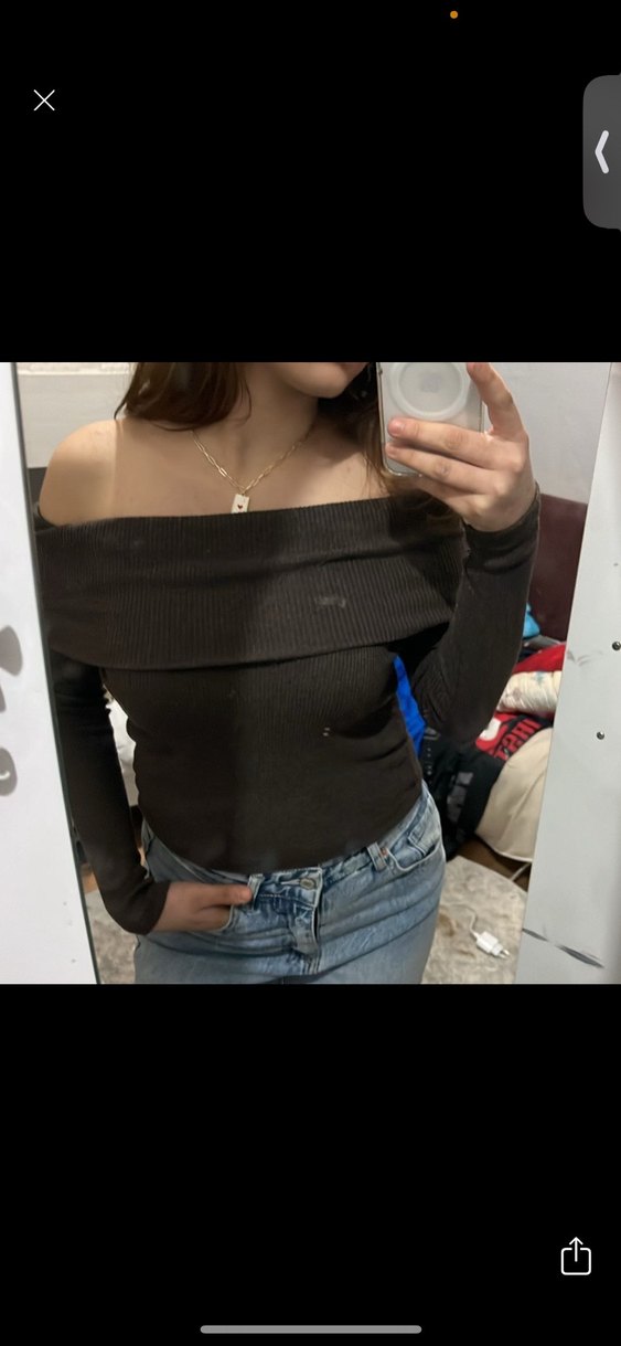 Kahverengş Uzun Kollu Kayık Yaka Kadın Bluz