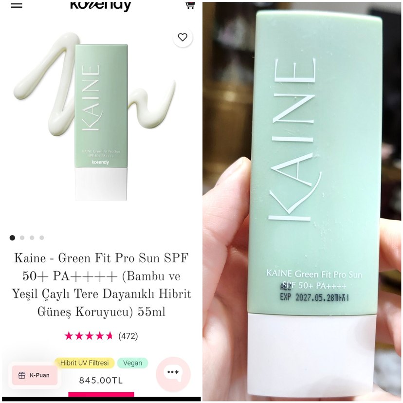 ürün waterproof olup resmen yok gibi bir yapısı var. temmuzda açtım biraz kullandım ışığa doğru tuttum %40 civarı duruyor (kutunun altı üstüne göre çok daha geniş) bu yüzden denemek isteyenler için uygun fiyatlandırdım Kaine Green Fit Pro Sun SPF 50+ PA++++, bambu bazlı hibrit UV filtresiyle 55ml vegan formülde dayanıklı güneş koruması sağlar. ☀️