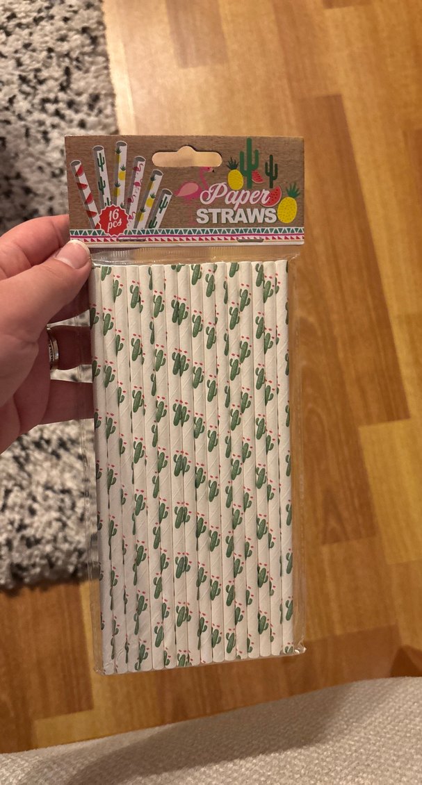 Bej renkte, pastel kaktüs desenli kağıt pipetler. Parti malzemesi olarak kullanılabilir. Çevre dostu malzemeden üretilmiştir.