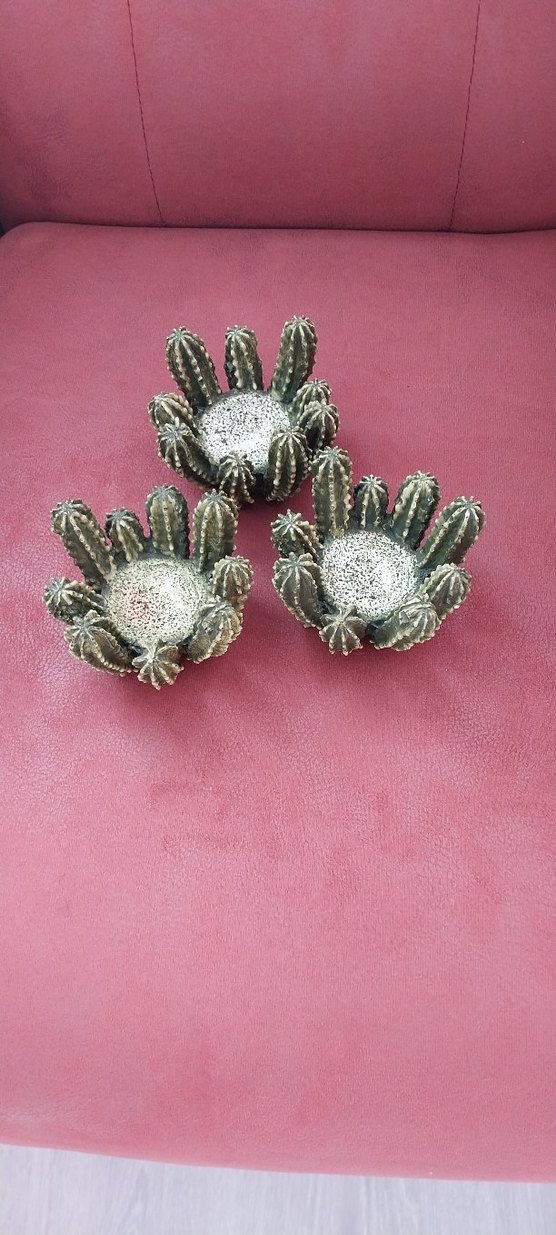 Kaktüs şeklinde tasarlanmış, renkli üçlü mumluk seti, dekorunuza farklı bir hava katmak için ideal.