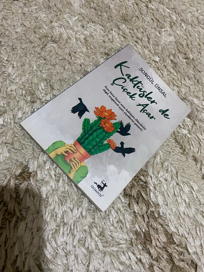 Şair Songül Ünsal'ın 'Kaktüsler de Çiçek Açar' adlı şiir kitabı, dayanıklılık ve güzellik temalarını işler. Kapakta çiçek açan kaktüs ve uçan kuşlar yer alır.