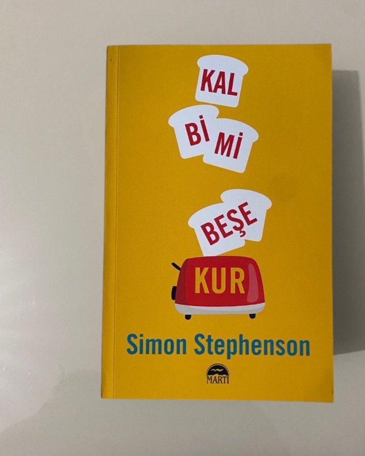 Simon Stephenson'ın "Kal Bı Mı Beşe Kur" adlı romanı, sarı kapaklı ve üzerinde tost makinesi ile ekmek dilimleri bulunan bir kitap.