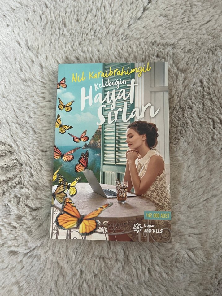 Nil Karaibrahimgil'in Kalbimin Hayat Sırları kitabı, kelebekler ve düşünceli bir kadının yer aldığı huzurlu kapak tasarımıyla kişisel içgörüler sunuyor.