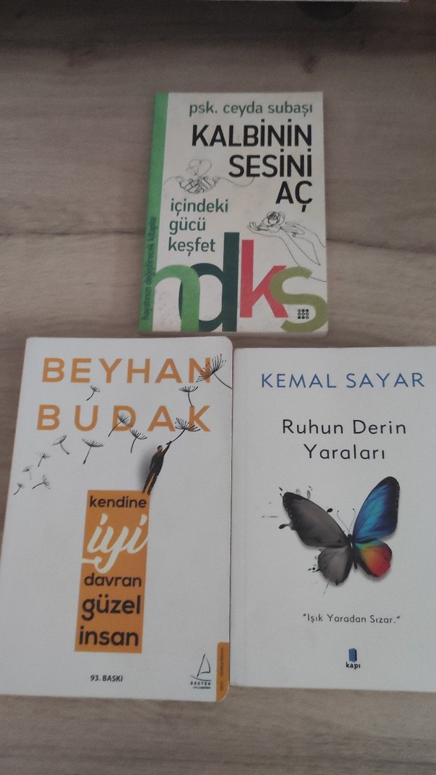 Kendini keşfetme, iç gücü ve duygusal iyileşme üzerine üç yabancı dil kitabı: "Kalbinin Sesini Aç," "Kendine İyi Davran Güzel İnsan" ve "Ruhun Derin Yaraları."