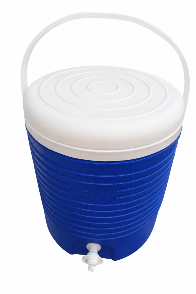 Mavi renkli Kale Icemax termos, küçük musluklu ve 15 litre kapasitelidir. Soğuk suyu saklamak için uygundur, taşıma sapı bulunur.
