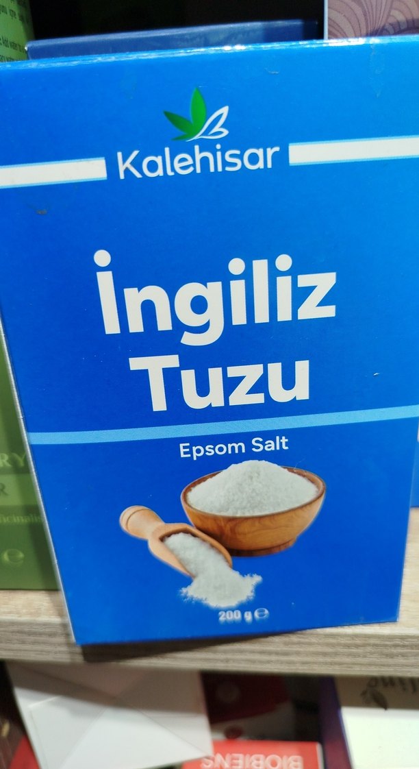 Kalehisar İngiliz Tuzu, 200 gramlık paketinde beyaz ince toz şeklindedir. Epsom tuzu olarak bilinir.