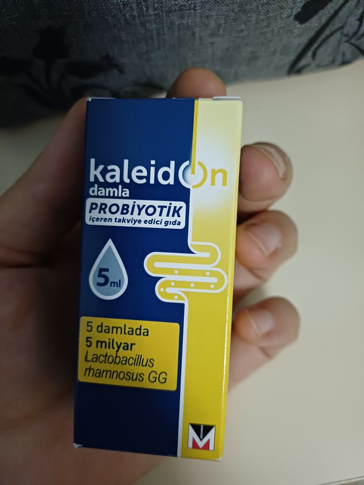Kaleidon probiyotik damla, 5 ml'de 5 milyar Lactobacillus rhamnosus GG içerir ve sindirim sağlığını destekler. bebegimin gaz döneminde doktor tavsiyesi ile aldım cizili yere kadar mevcut