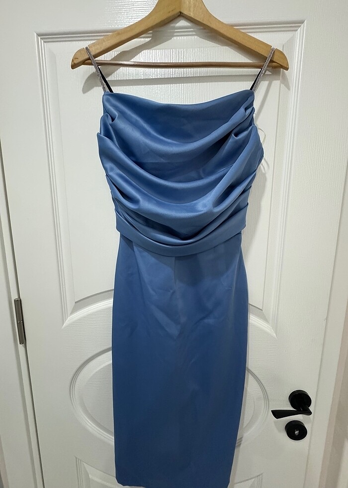 İp askısı parlak boncuk detaylı Kalem abiye. Hiç bir deformasyonu yoktur. Sözümde kullandığım bir abiyedir. Bir kez kullanıldı.