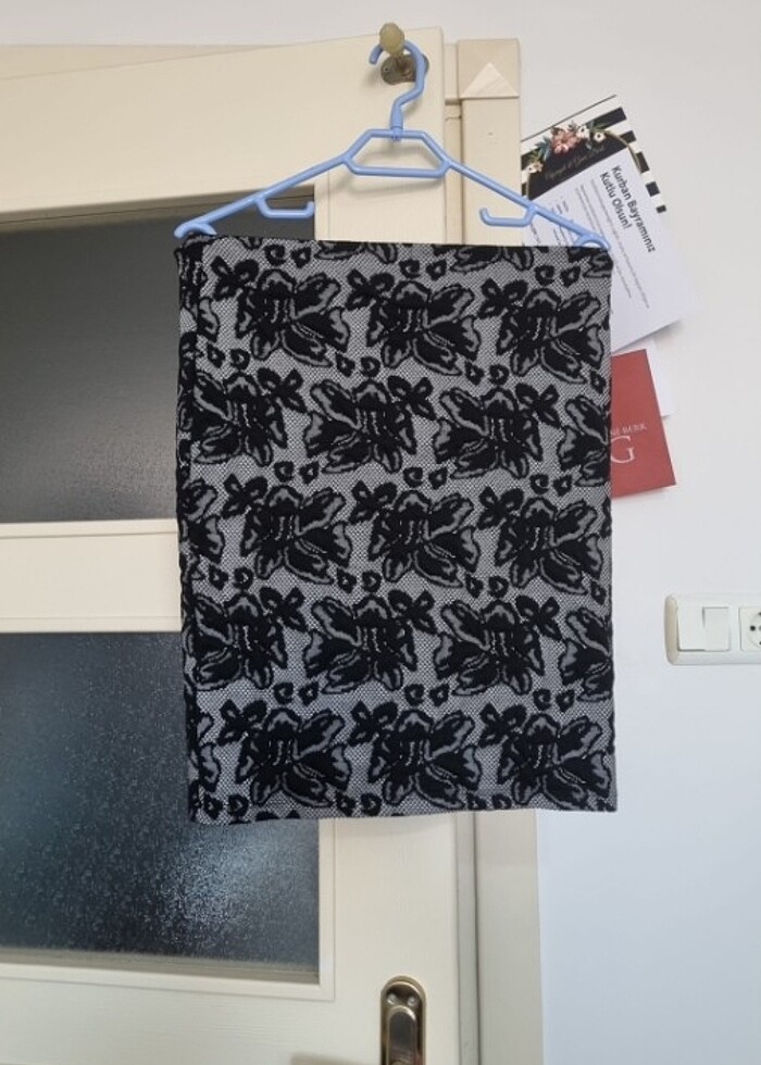 Çiçek dantel detaylı siyah gri diz boyu etek. Hiç kullanılmadı Pazarlık payı vardır