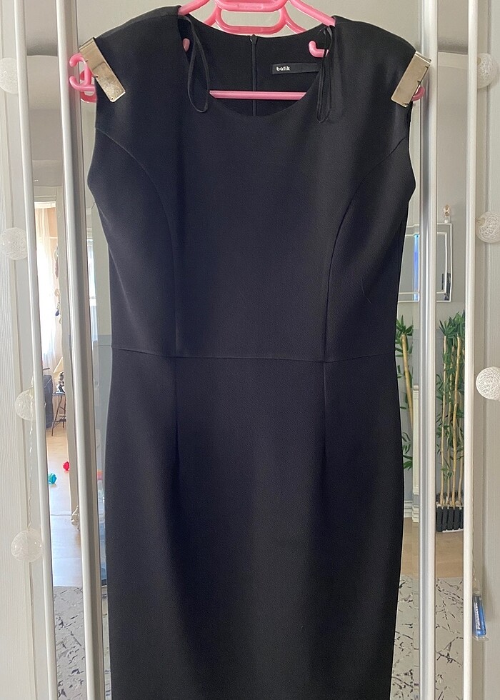 Yakaları vatkalıdır. Mevcut olan omuz aksesuarlarını sağlamlaştırabilir yada çıkarıp kullanabilirsiniz. Elbisenin boyu 90 cm olup 38 beden için uygundur