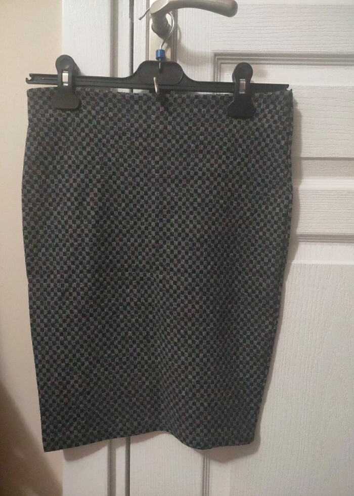 kırışmayan yün gibi tok bir kumaşı var resmi yakından çektim görebilirsiniz. beli içten lastikli. 36-38 beden uyumlu kalıbı dar. hiç giyilmedi. marka temsilidir